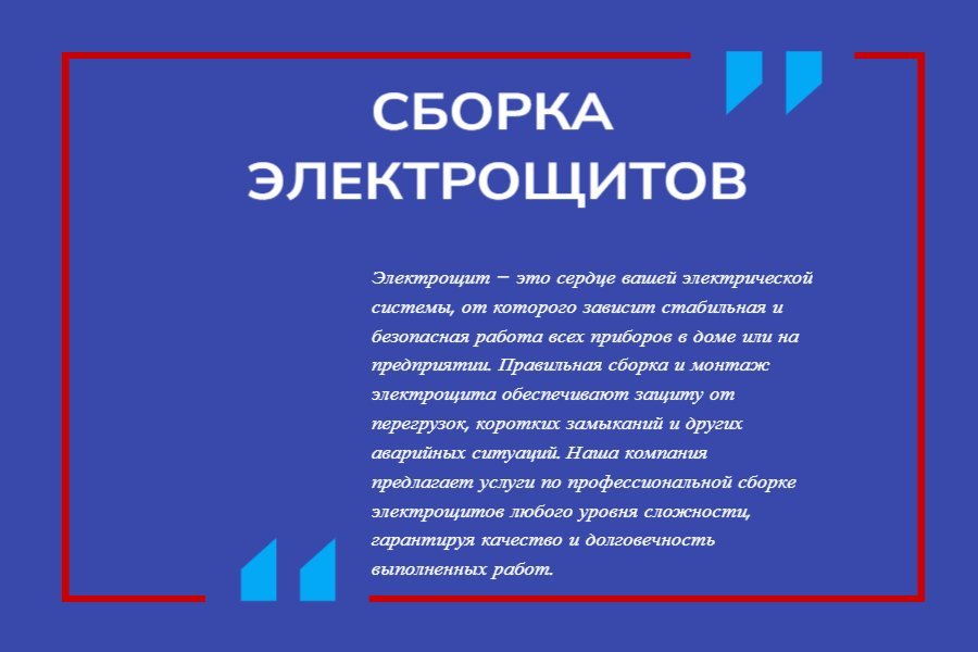 - Гарантия на выполненные работы. Мы уверены в качестве наших услуг и предоставляем гарантию на все выполненные работы. Если в течение гарантийного срока возникнут какие-либо проблемы с собранным электрощитом, мы оперативно устраним их без дополнительных затрат для вас.