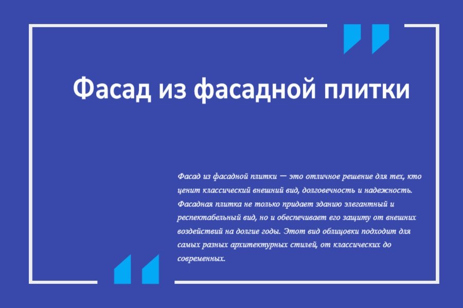 - Эстетическая привлекательность: Фасадная плитка предлагает широкий выбор текстур, цветов и форматов, что позволяет создавать уникальные и стильные фасады. Она может имитировать натуральный камень, кирпич, дерево или иметь гладкую поверхность.